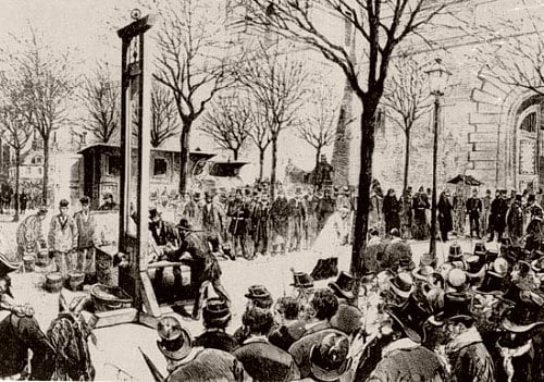 * Monsieur de Paris : A l’origine, on donnait au bourreau le nom de la ville où il officiait, par exemple Monsieur de Paris, Monsieur de Lyon. Depuis 1871, un décret ayant supprimé les exécuteurs de province, il n’y avait plus qu’un seul bourreau officiant pour la France entière.