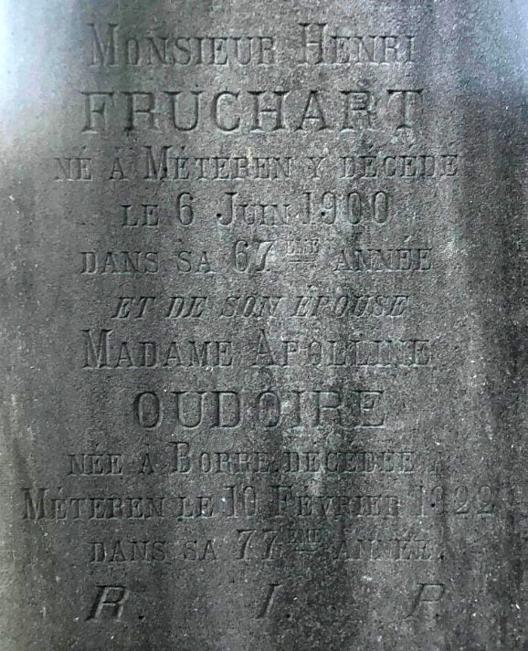 Pauline Oudoire se maria trois ans plus tard, le mercredi 13 août 1879 à Borre avec Aimable Fruchart, de onze ans son ainé, cultivateur à Meteren (Nord). Le couple s’y installa et eurent quatre enfants (Hélène en 1881, Marie en 1883, Aimable en 1884 et Paul en 1888).