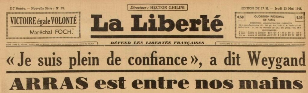 Les Allemands sont passés au sud par Cambrai, Arras, Amiens et la côte. Les troupes alliées sont encerclées en Belgique et dans le Nord de la France. Les Anglais abandonnent le front et se dirigent à marche forcée sur Dunkerque pour être évacués par la mer. Pour faciliter leur embarquement, les troupes françaises se battent pour contenir le plus longtemps possible l’avance allemande. Mais ils sont gênés par les colonnes de civils qui embouteillent les routes et bloquent les convois militaires.