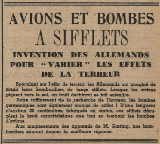 Lorsqu’ils piquent pour lâcher leurs bombes, ils émettent un sifflement formidable qui va en augmentant au fur et à mesure du piquet de l’appareil, jusqu’à sa remontée et c’est l’explosion ! C’est effrayant !