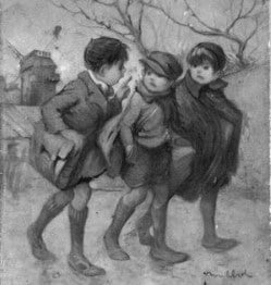 Enfin, la journée se termine. On se quitte, non sans avoir chanté la dernière, debout dans le couloir de l’entrée, tous en chœur, on entame : « Halte là, les montagnards… Halte là, les montagnards sont là.. Montagnes des Pyrénées, vous êtes mes amours ». Chaque famille repart à pied au domicile. On marche en chantant tout le long de la route. C’est un beau dimanche.