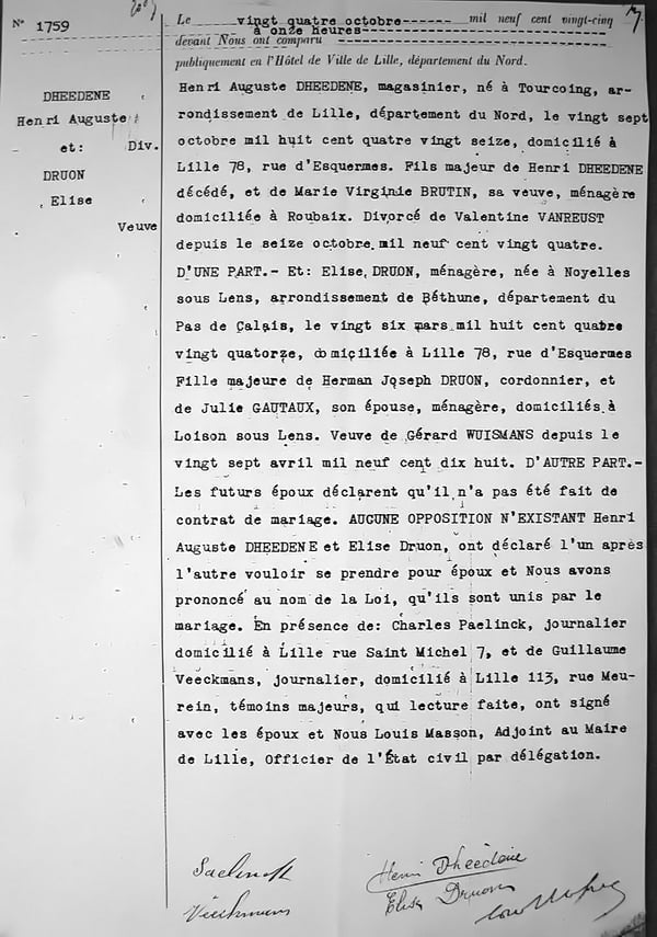 Leur mariage est célébré le samedi 24 octobre 1925 à la mairie de Lille.