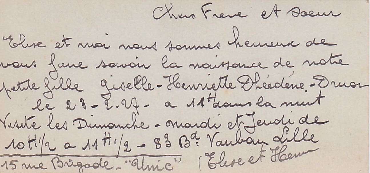 Et de cette union nait le 23 février 1927 ma maman : Gisèle.