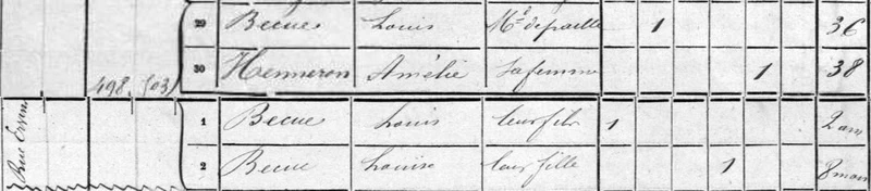 En mai 1861 au recensement, Marie vit avec son père, sa petite sœur Camille, sa grand-mère Valentine, qui a maintenant soixante-huit ans, et son oncle Louis, trente ans.