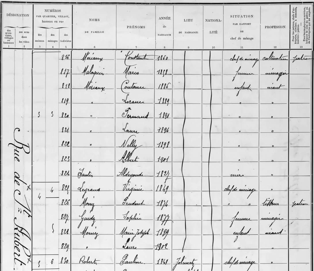 Toute la famille est recensée à Avesnes-les-Aubert toujours à la même adresse, rue de Saint Aubert.