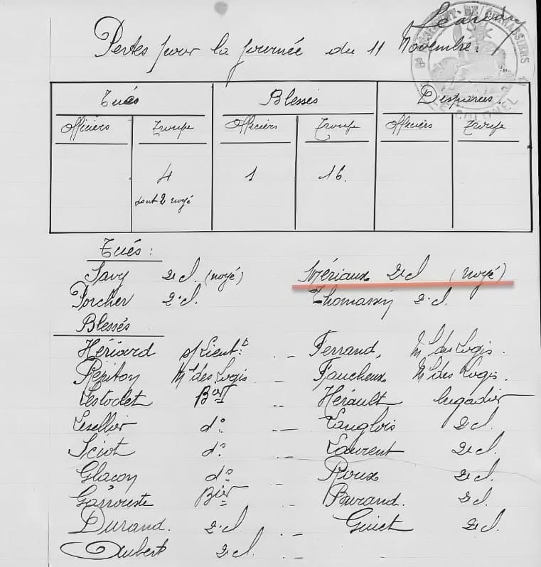 Fernand est cité au journal Officiel de la République du 7 septembre 1919 mais avec une petite variante concernant la date du décès. Il est indiqué 10 novembre 1918. En effet, la date de décès des morts français du 11 novembre est très souvent antidatée au 10 novembre par les autorités militaires. « On ne meurt pas le jour de l’armistice ! »