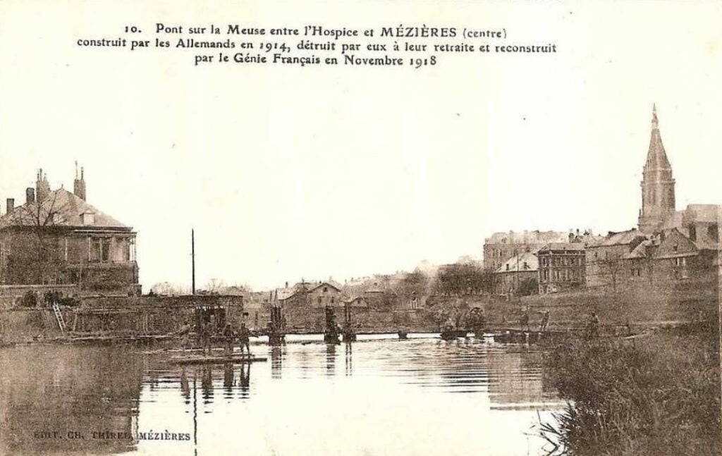 Sous un bombardement intense et des feux violents de mitrailleuses, Fernand et le 8e Cuirassiers franchissent La Meuse sur de fragiles passerelles de fortune et s’apprêtent enfin à porter à l’ennemi le coup final. Ces mouvements s’exécutent avec peine, plusieurs hommes tombent dans l’eau et se noient. On se prépare à l’attaque, car, le 11 Novembre, au matin, on doit se porter en avant !
