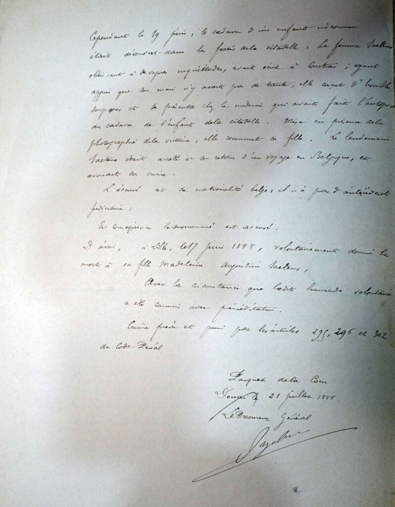 Une Affaire d’Infanticide à Lille en 1888 – Dernier épisode