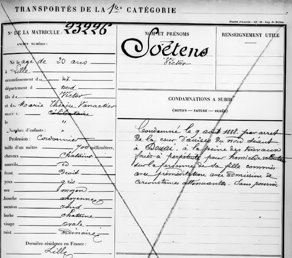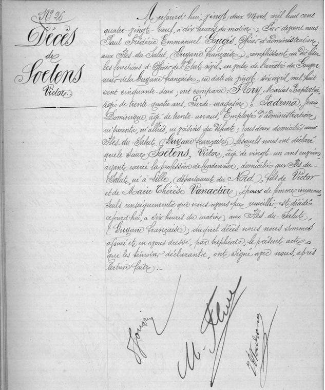 Après 27 jours de traversée, Victor Soetens était interné au bagne des Iles du Salut2.