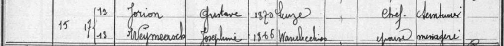 Le couple Jorion-Weymeerch était présent au recensement de Wasquehal en 1906.