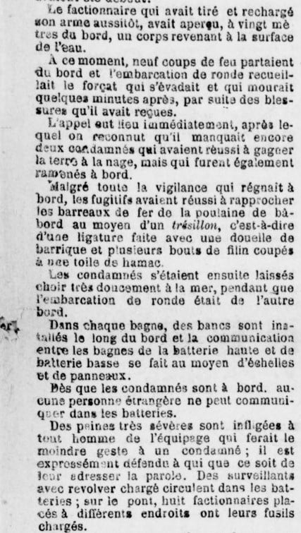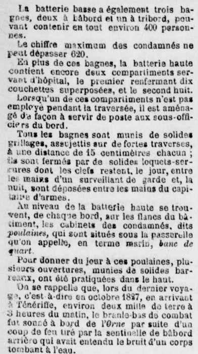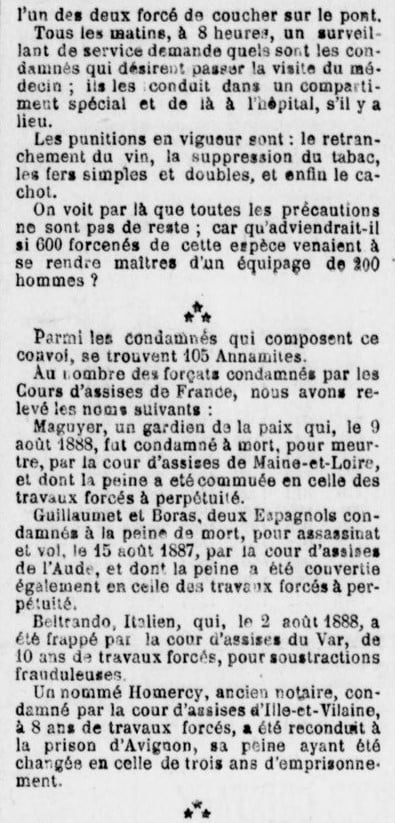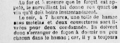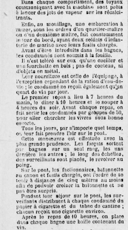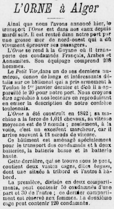 Le 25 il fit une escale à Alger. Le journal « Le Petit Colon Algérien » publia à cette occasion un article fort intéressant qui décrivait les conditions dans lesquelles les condamnés au bagne étaient traités.