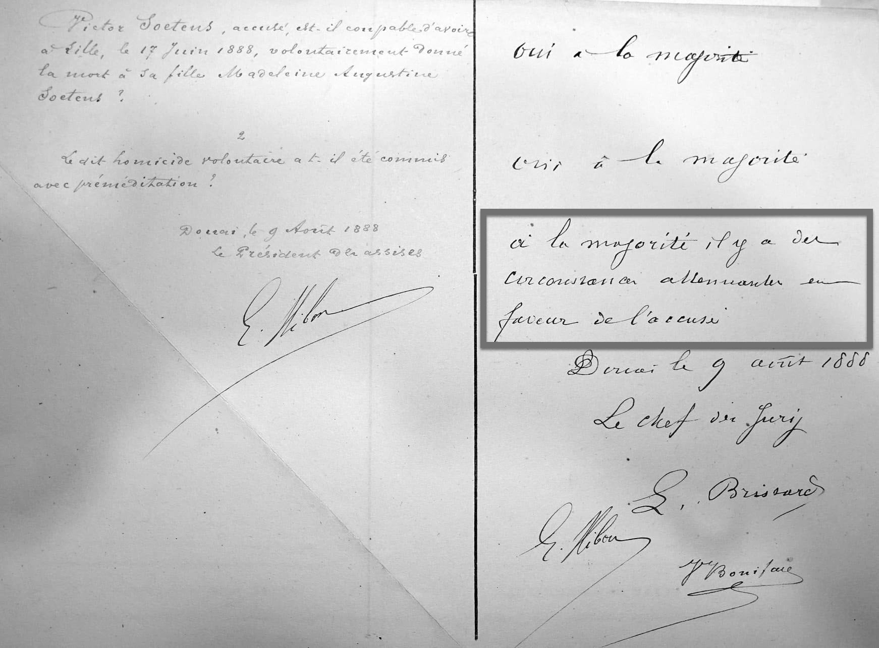 Le jury avait donc accordé à Victor Soetens des circonstances atténuantes. Sinon il eût été condamné à mort.
