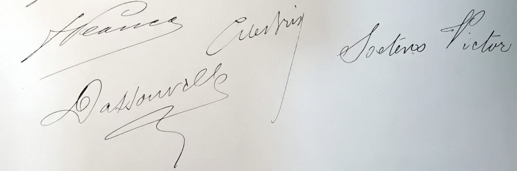 Ces constatations terminées, nous rentrons au Palais après avoir fait réintégrer l’inculpé à la maison d’arrêt et prescrit à la police des recherches chez tous les fripiers de la ville, pour retrouver les vêtements de l’enfant. Nous dressons le présent procès-verbal dans notre cabinet et nous le signons avec notre substitut et note greffier.