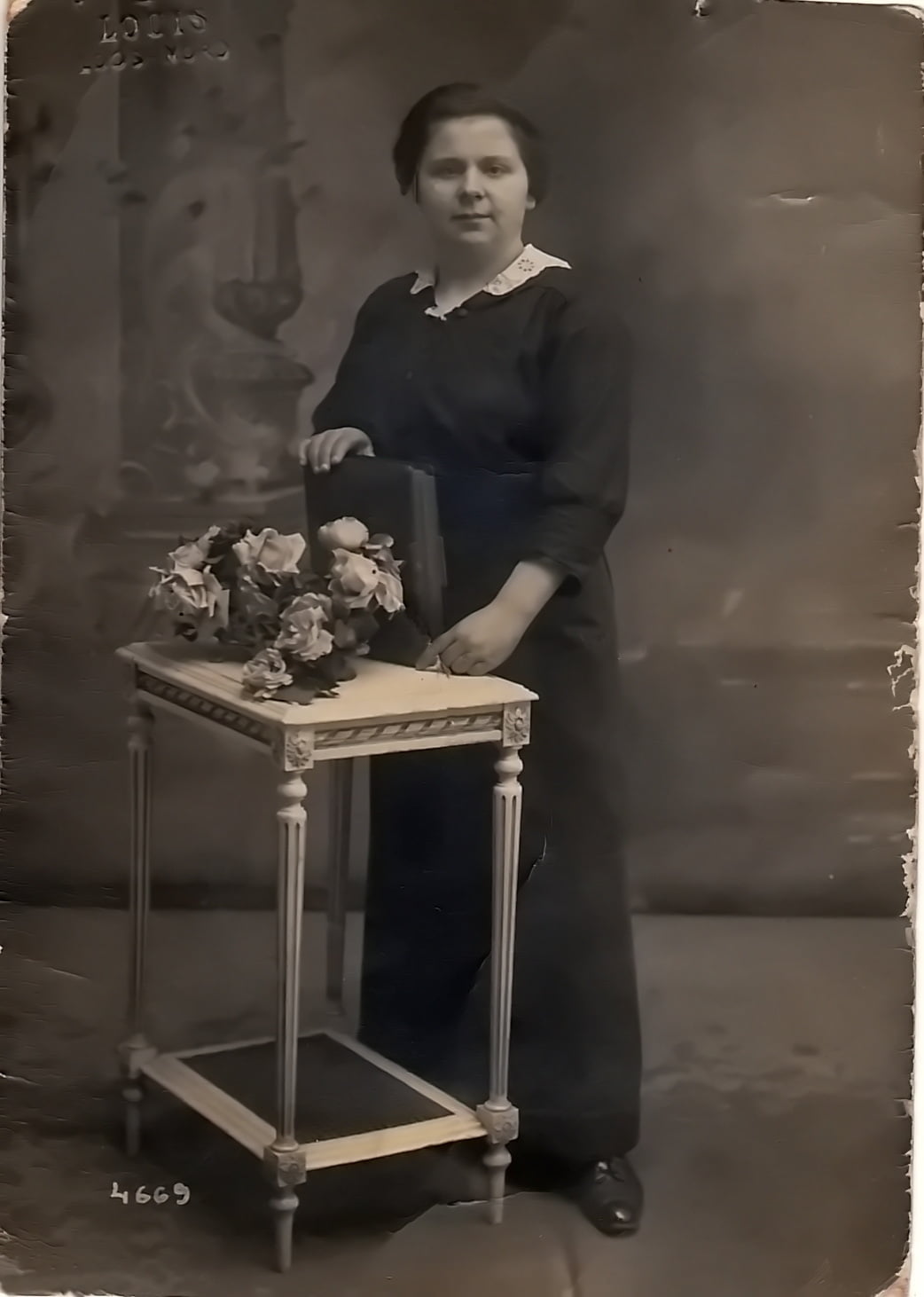 Le recto de cette carte est une photographie de ma grand-mère maternelle, Elise Druon.