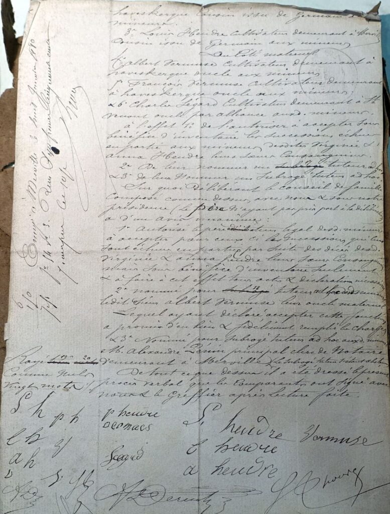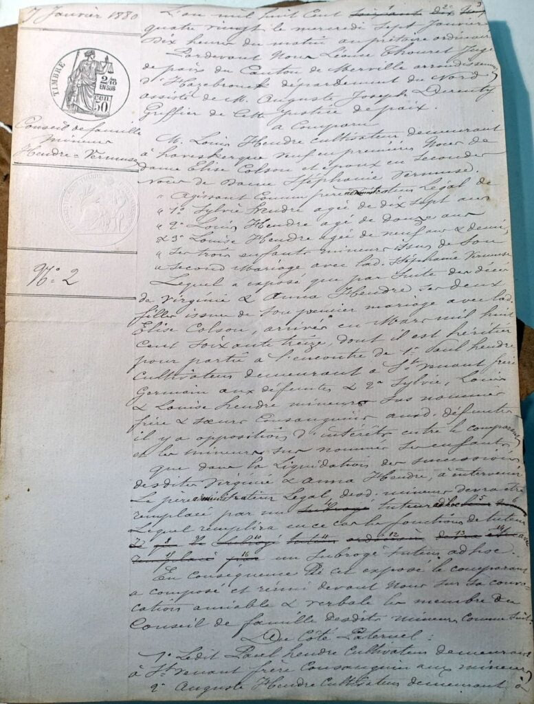 Mercredi 7 janvier 1880 – Conseil de famille des mineurs Heudre – Vermuse