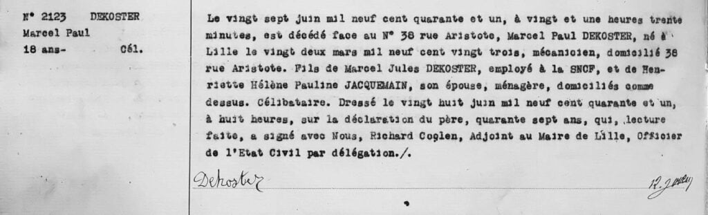 Il s’appelait Marcel Paul DEKOSTER. Il avait dix-huit ans.