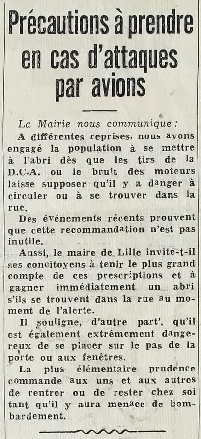 A la suite de ce bombardement, la mairie fit paraître un communiqué dans la presse locale.