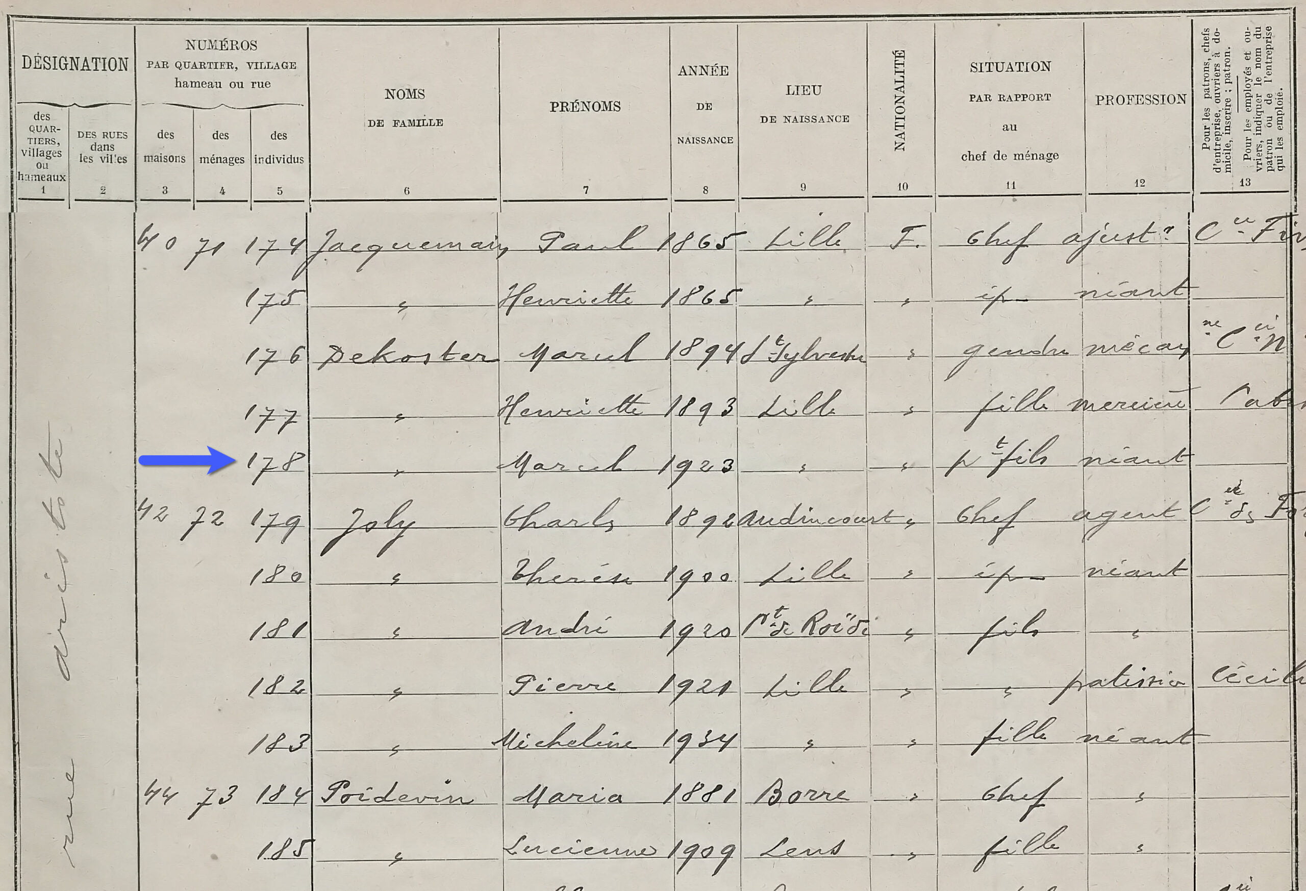 Il vit au numéro 38 avec ses parents, chez ses grands-parents maternels : Paul et Henriette née DELAPLACE, tous deux nés en 1865 à Lille.